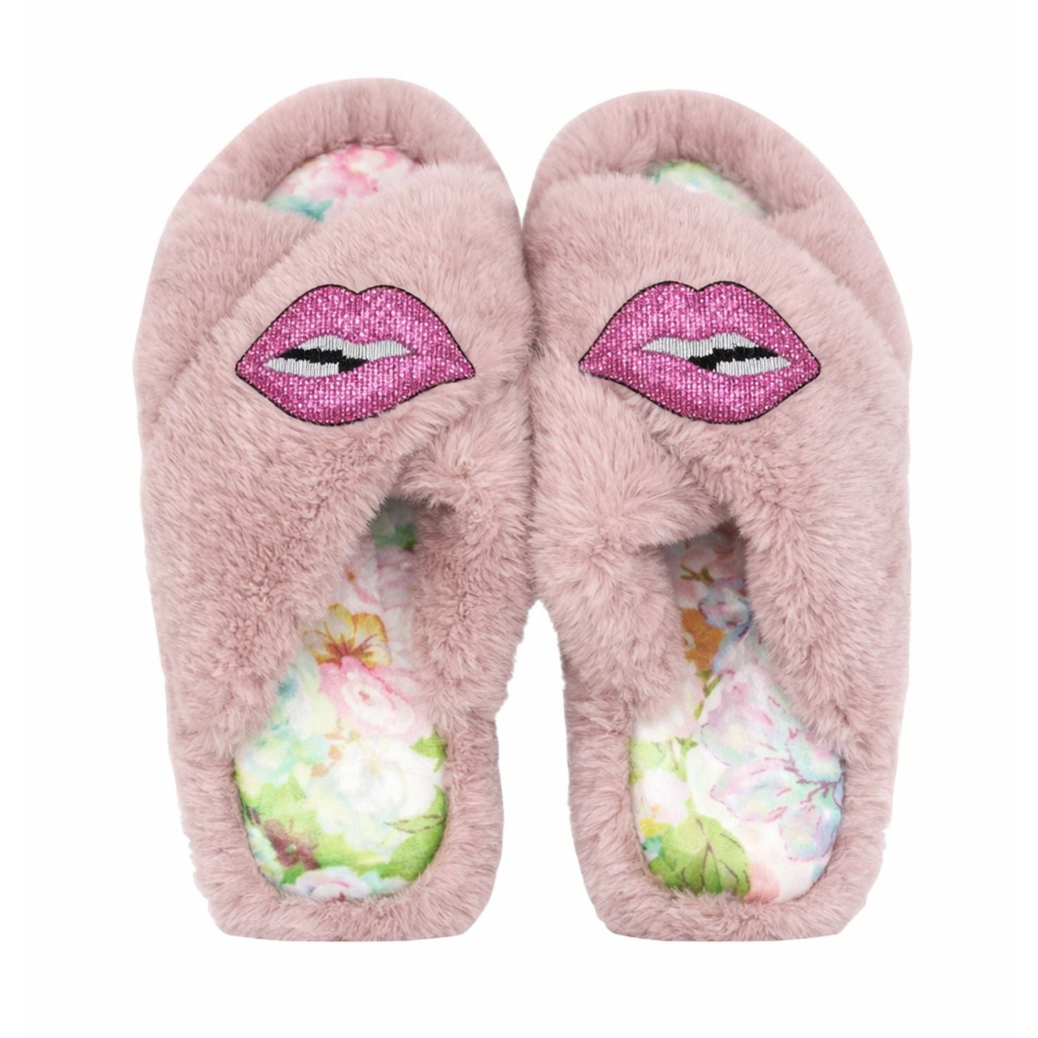 Faux Fur Slippers - Global Recycled Standard Certified with Lips Embellishment